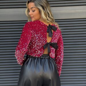 Camisola lantejoulas forrada com laços