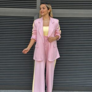 Fato riscas rosa e amarelo