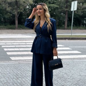 Fato plissado blazer forrado e calça larga