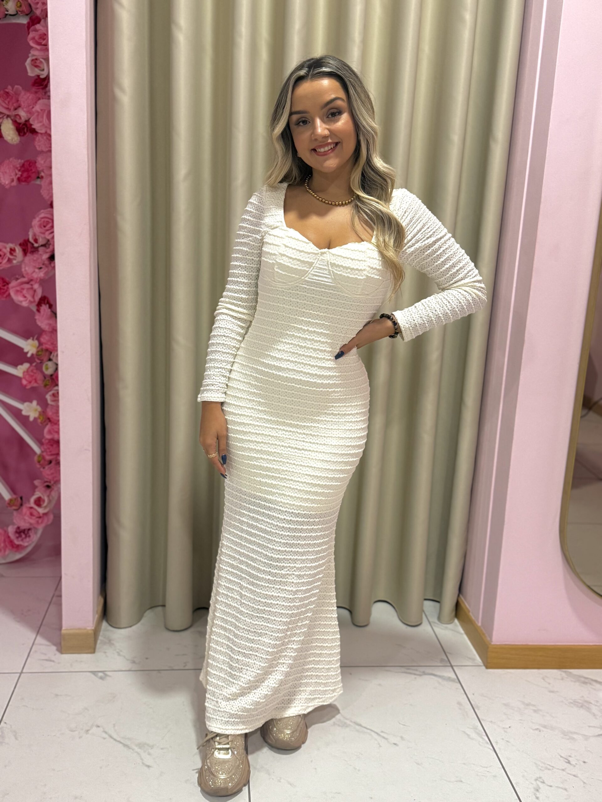 Vestido de renda com copas e f...