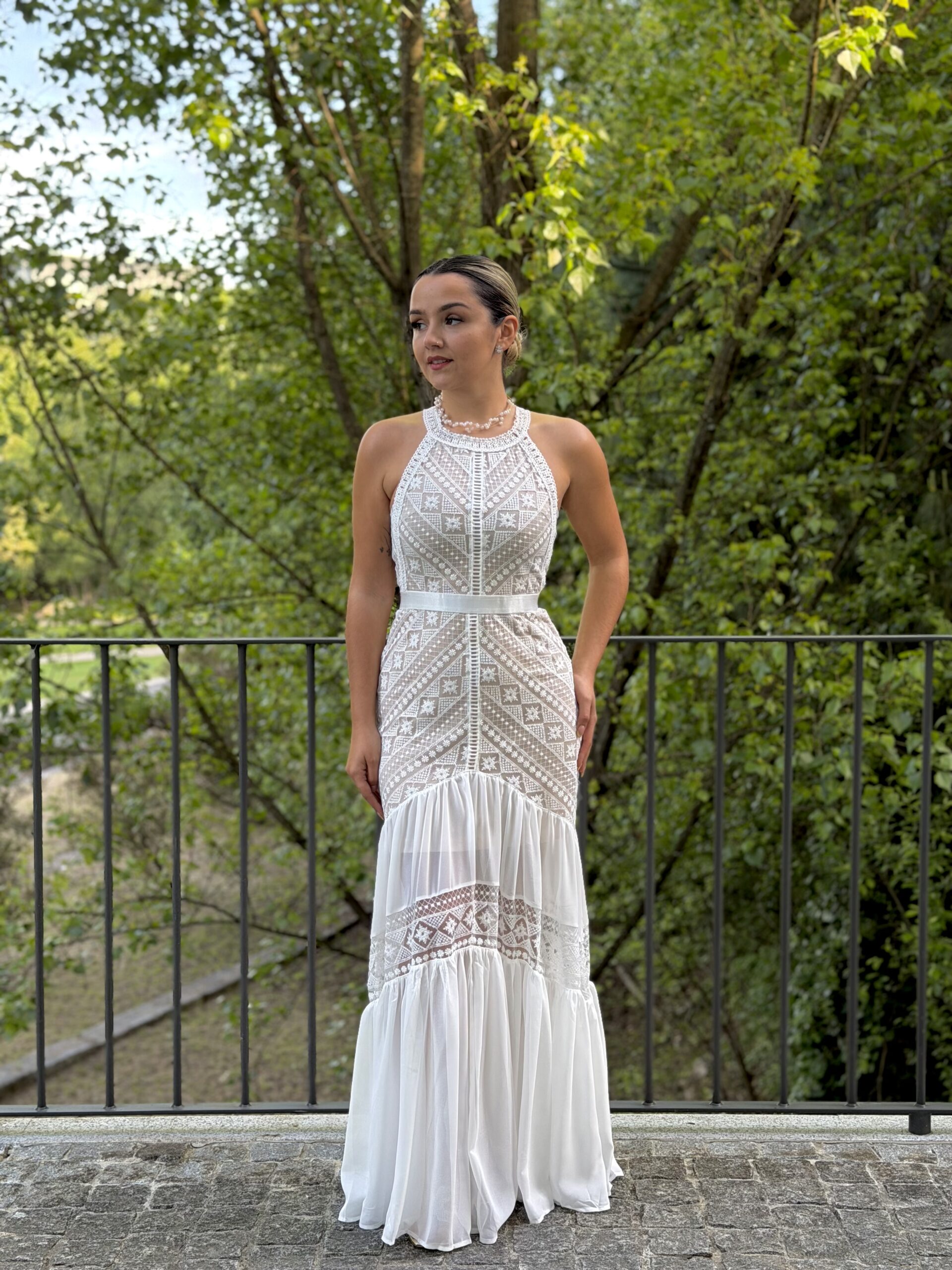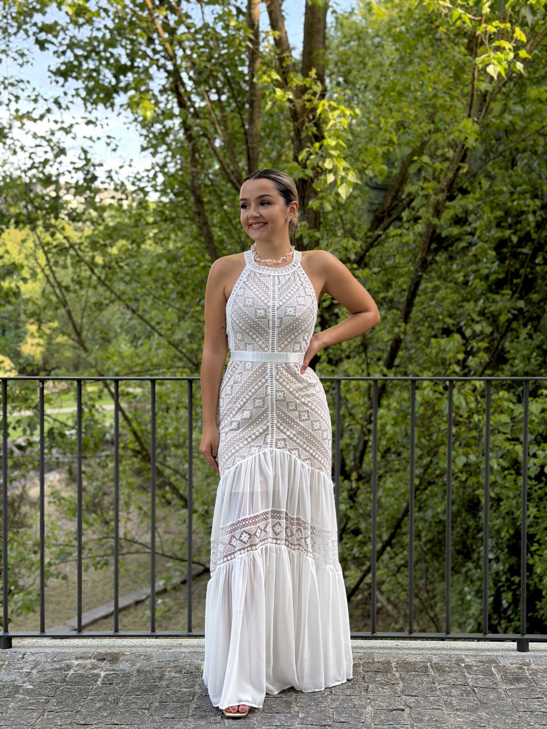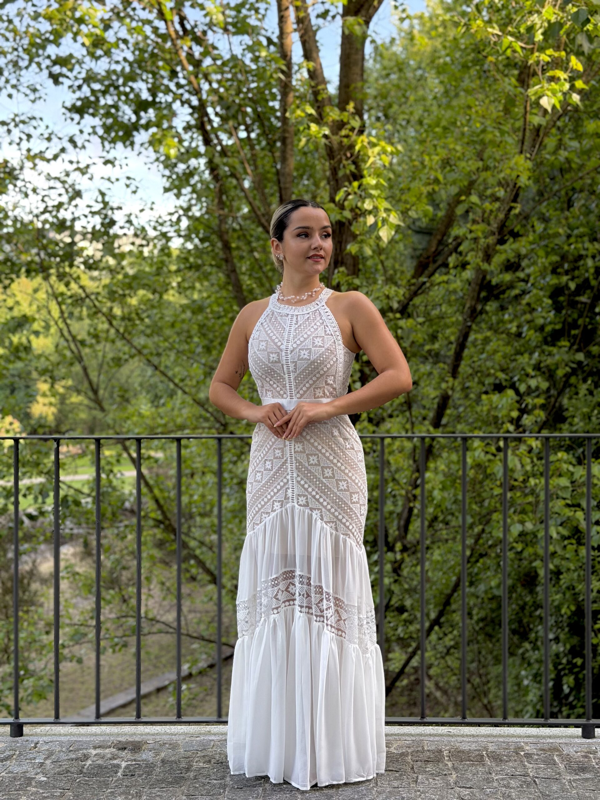 Vestido renda branco com forro...