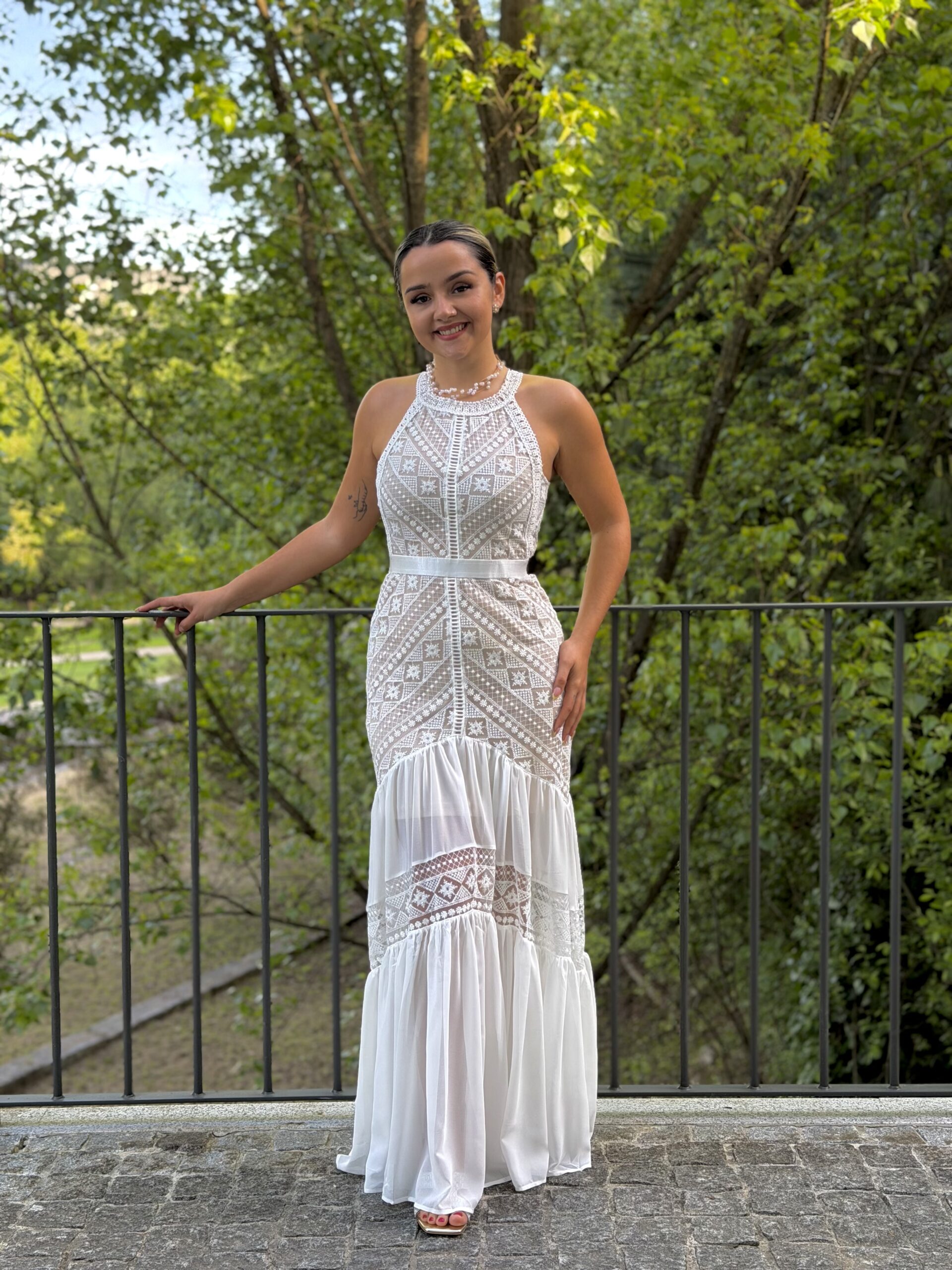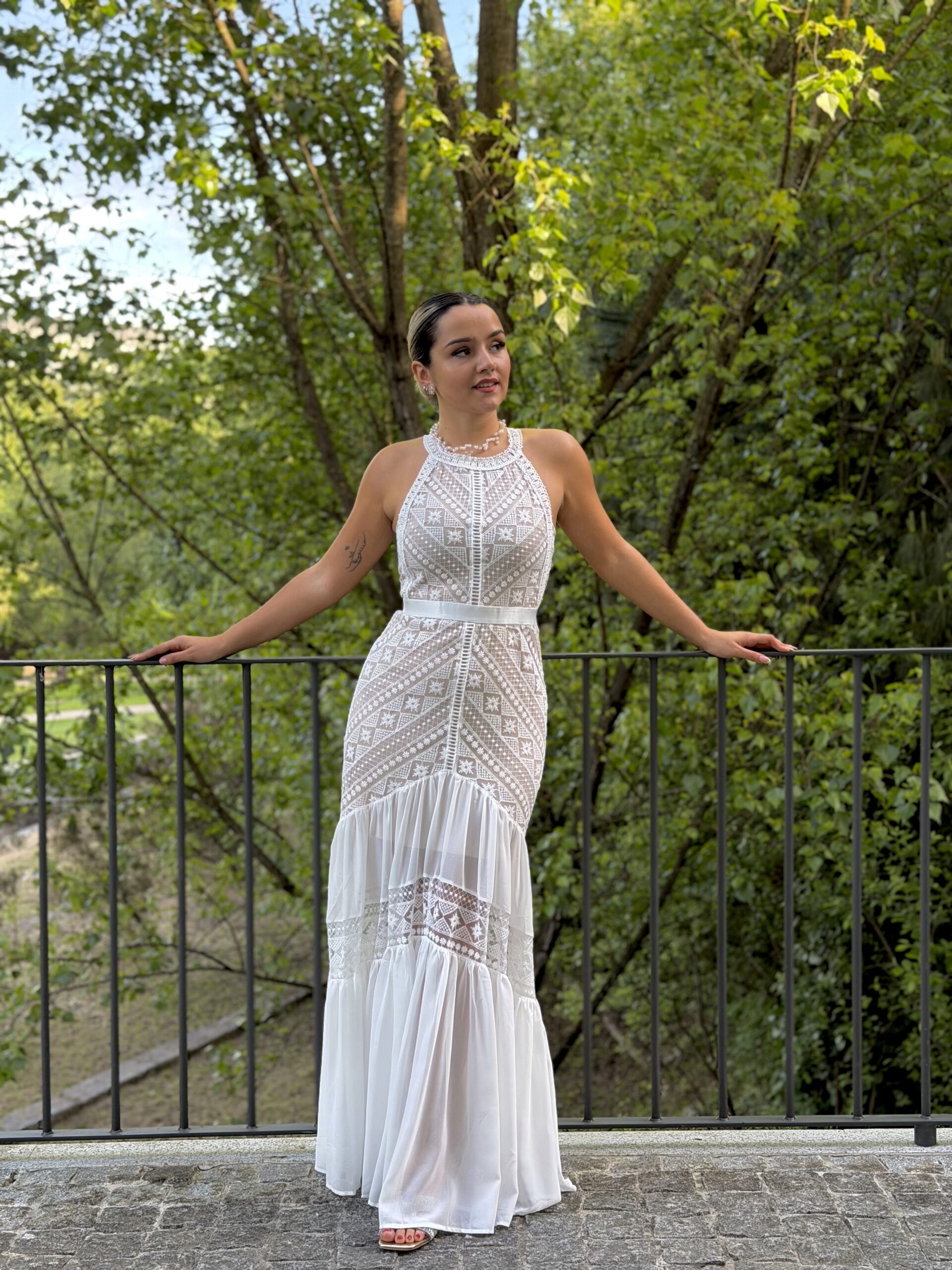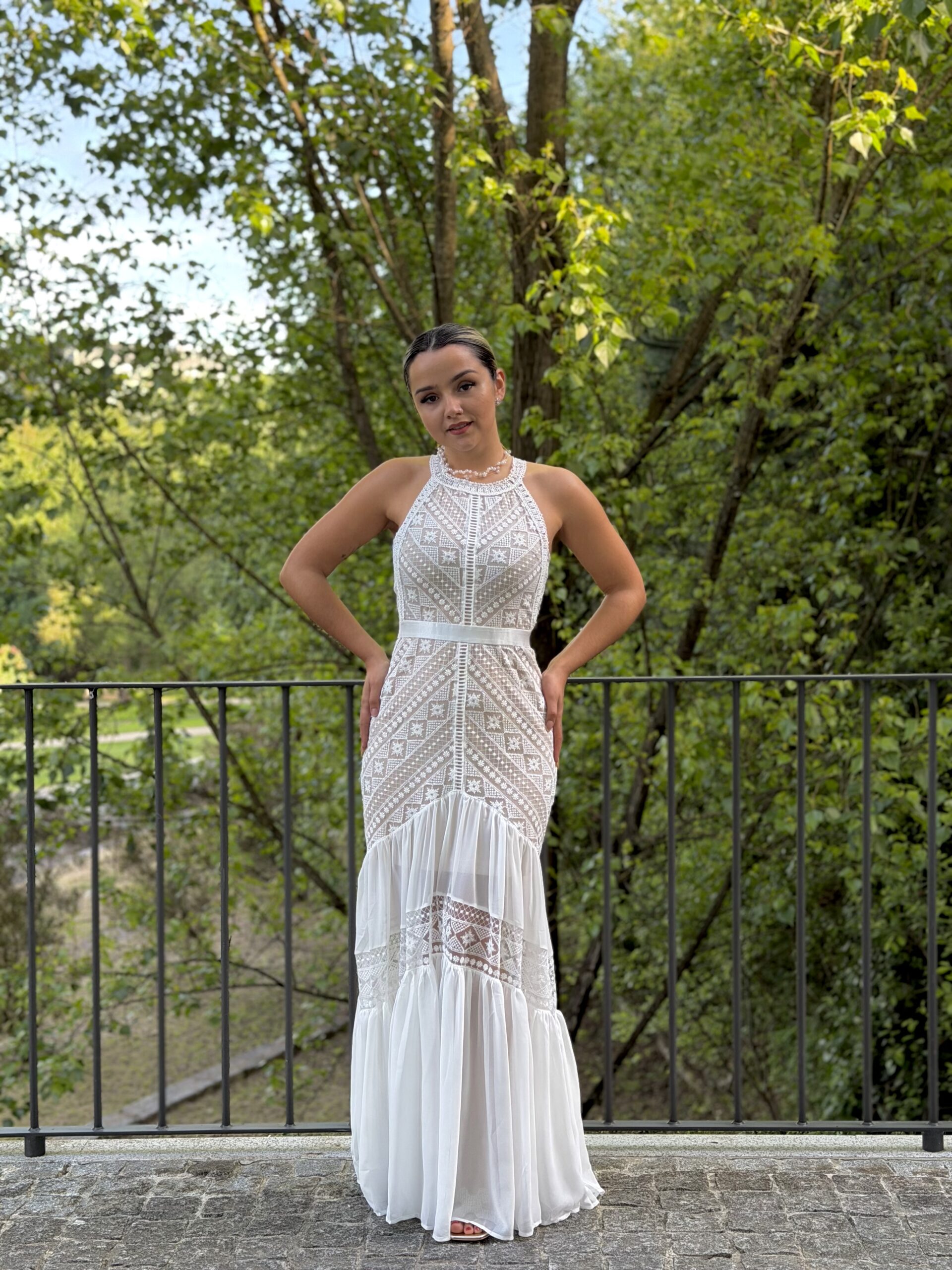 Vestido renda branco com forro...