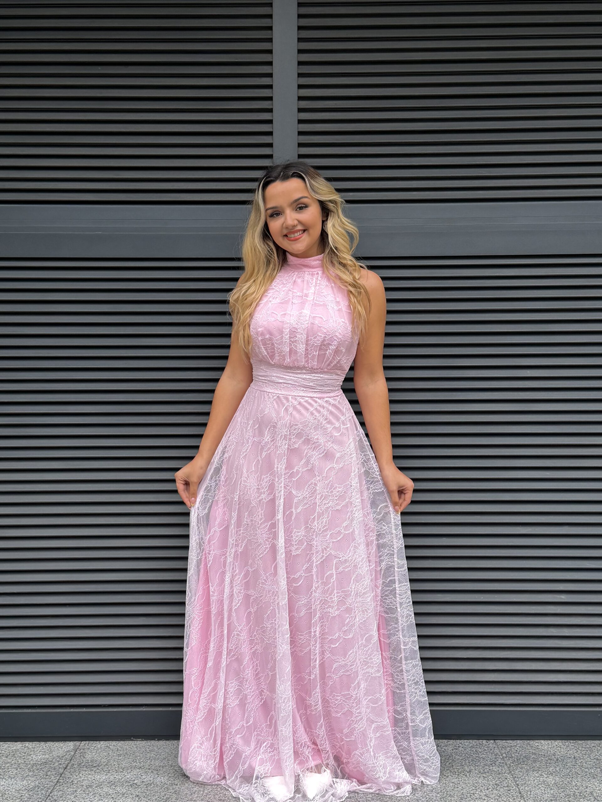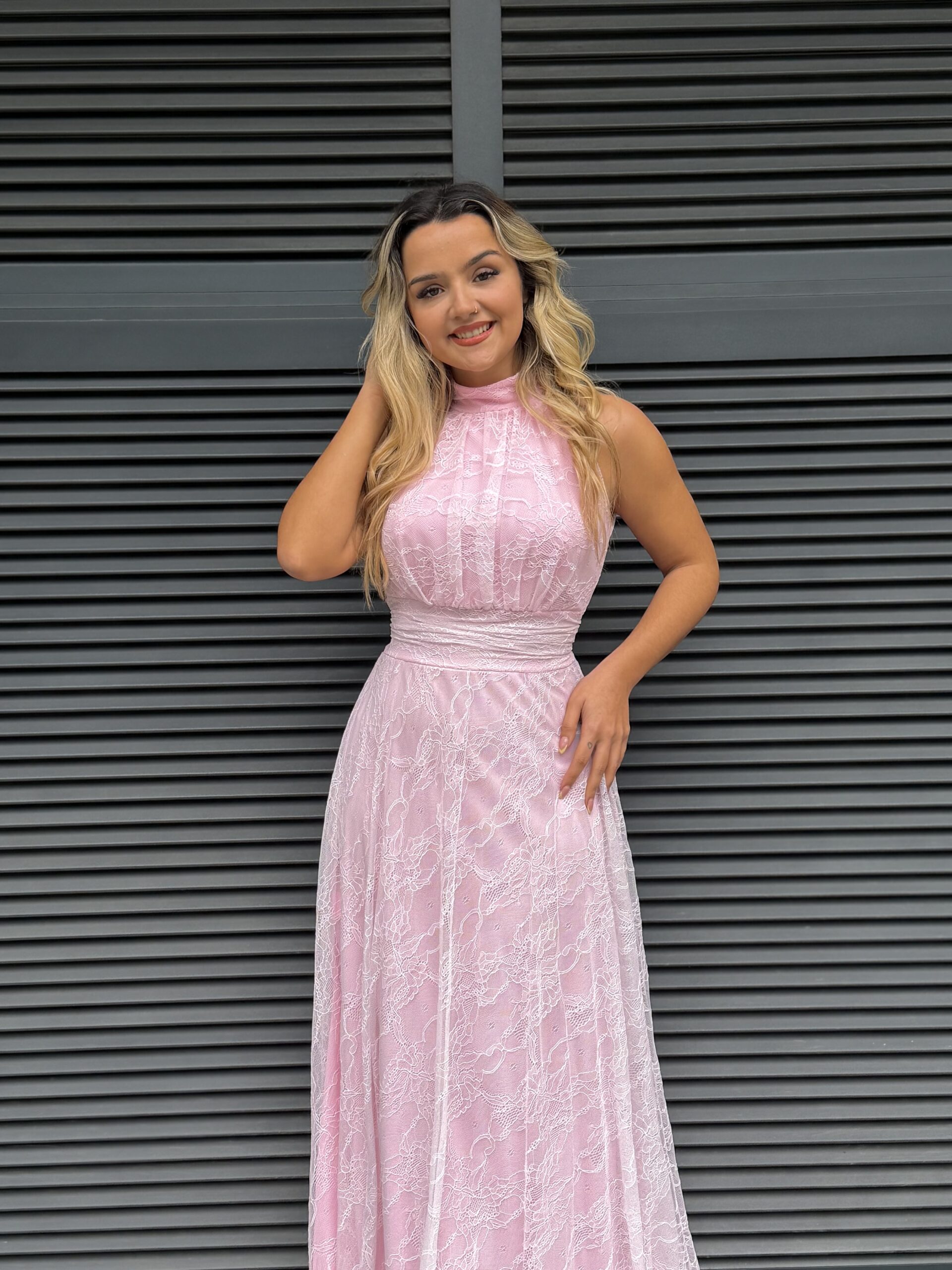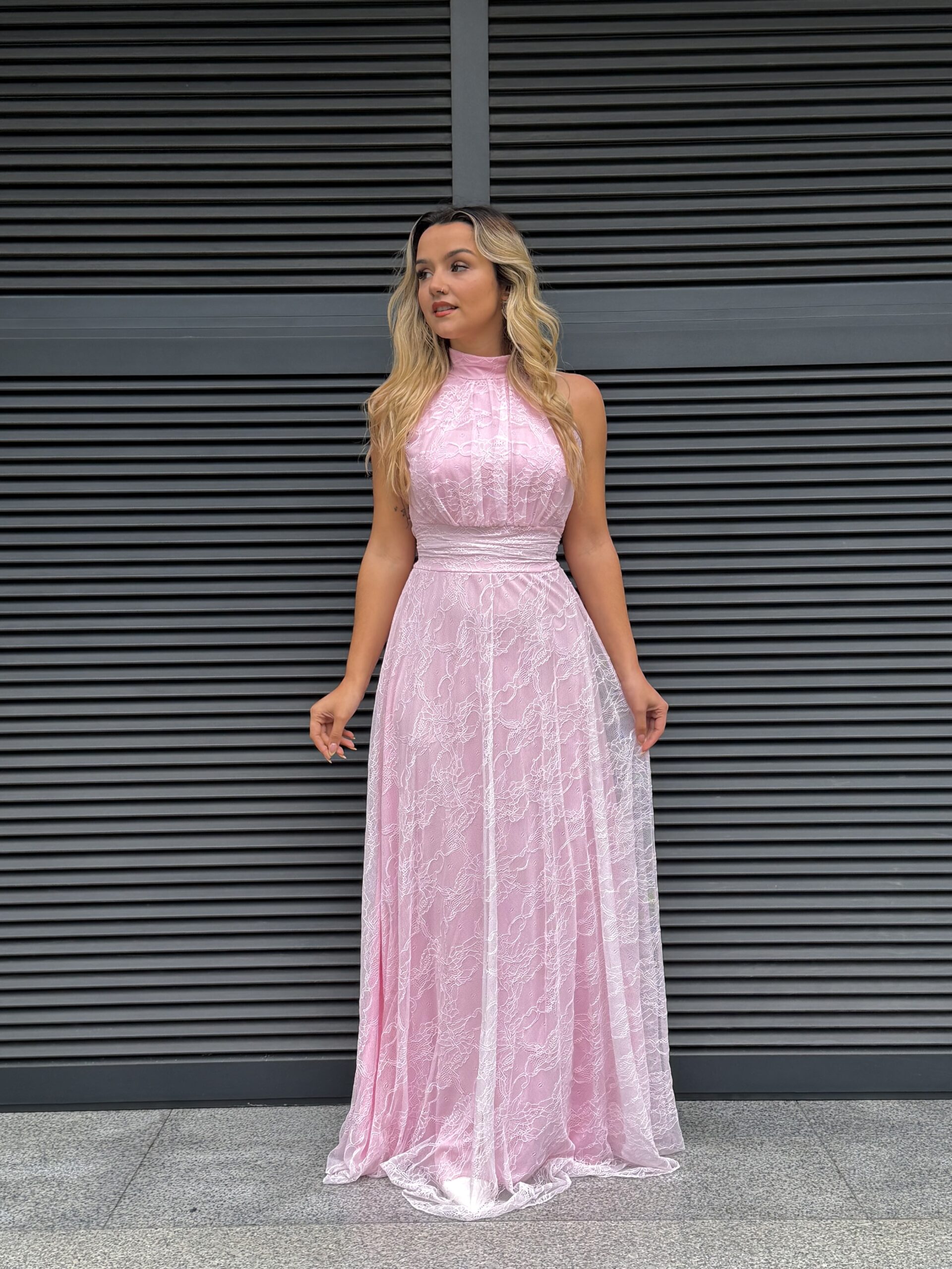 Vestido renda comprido forrado