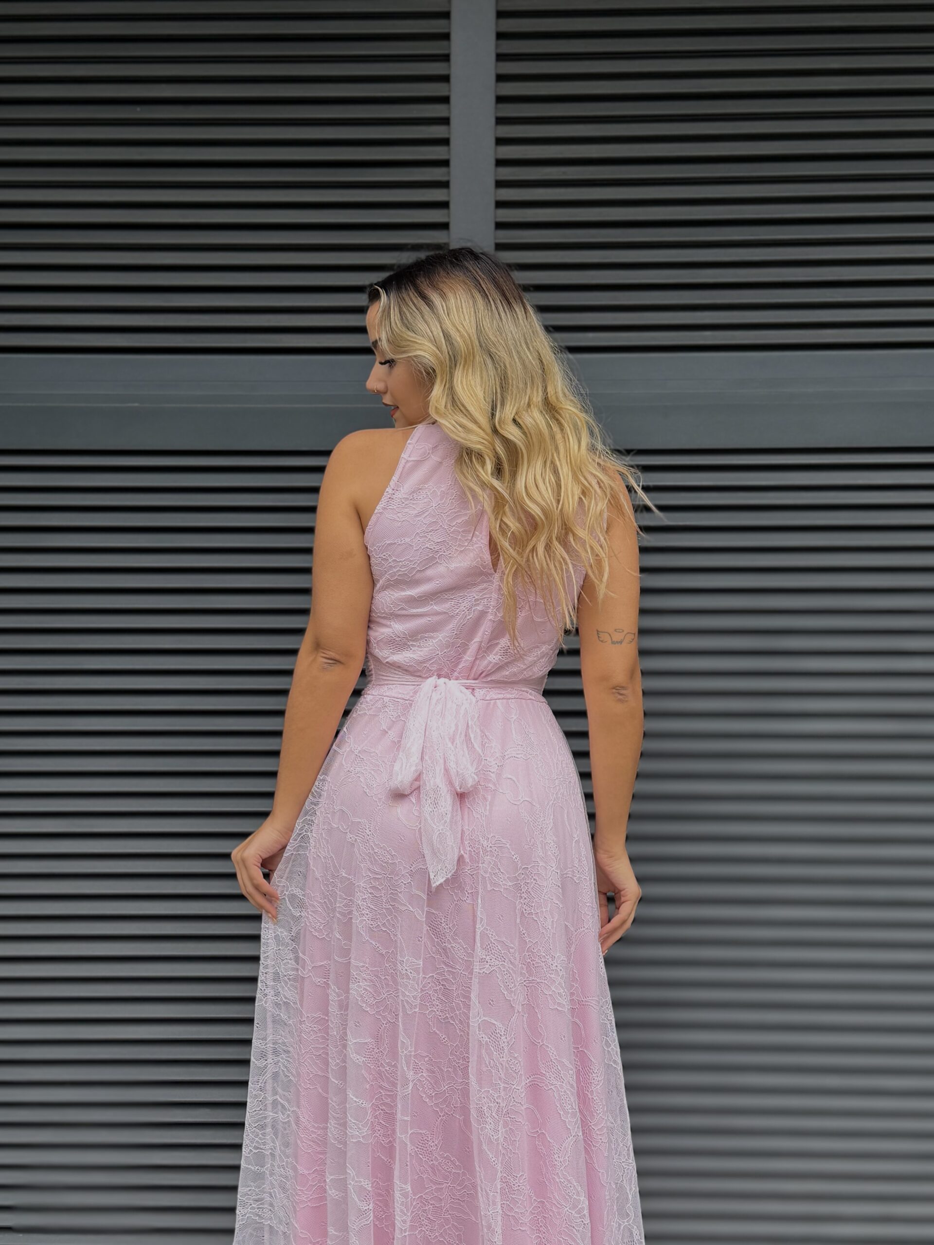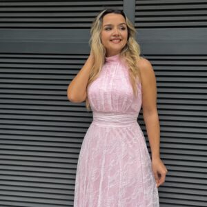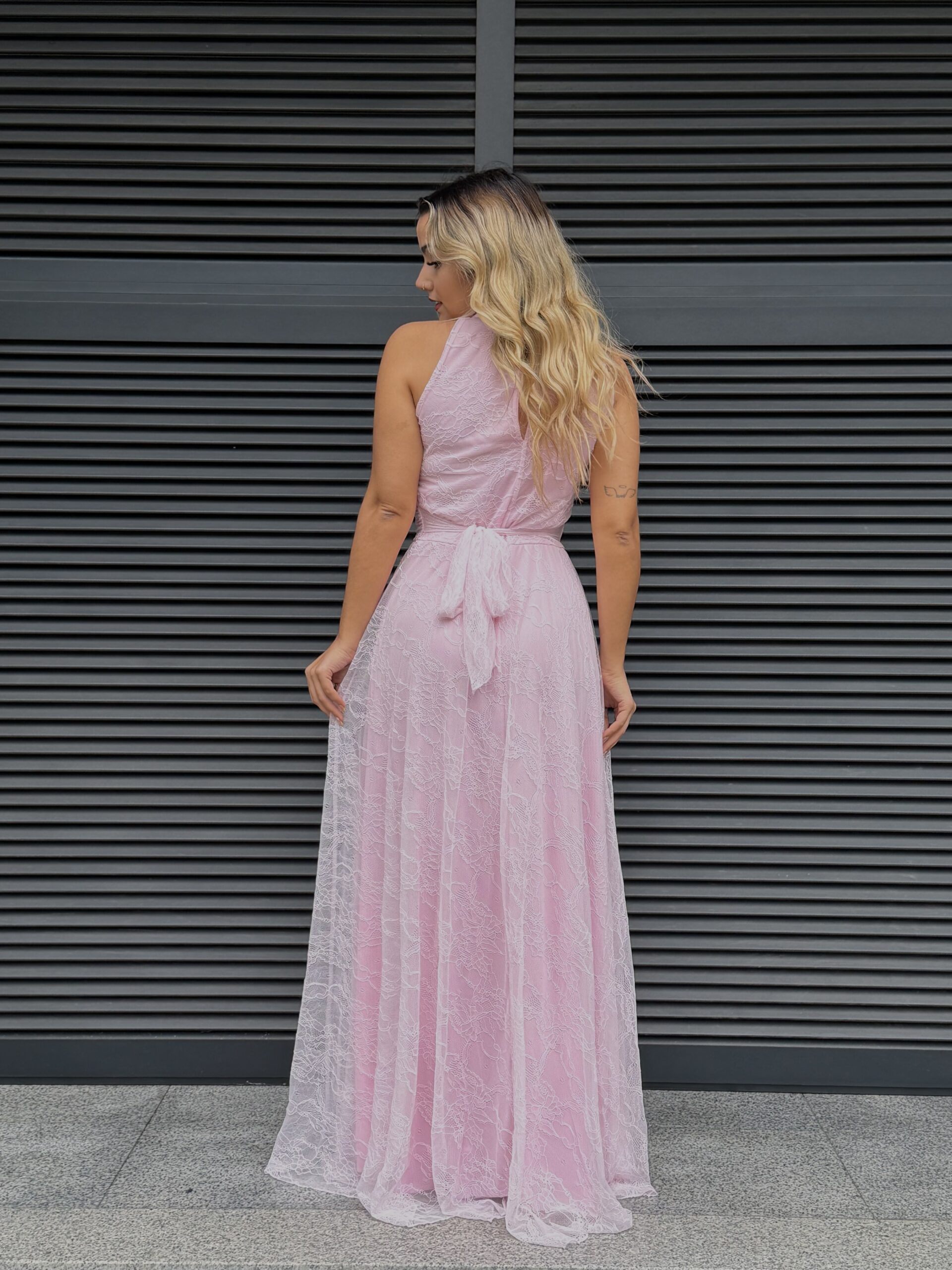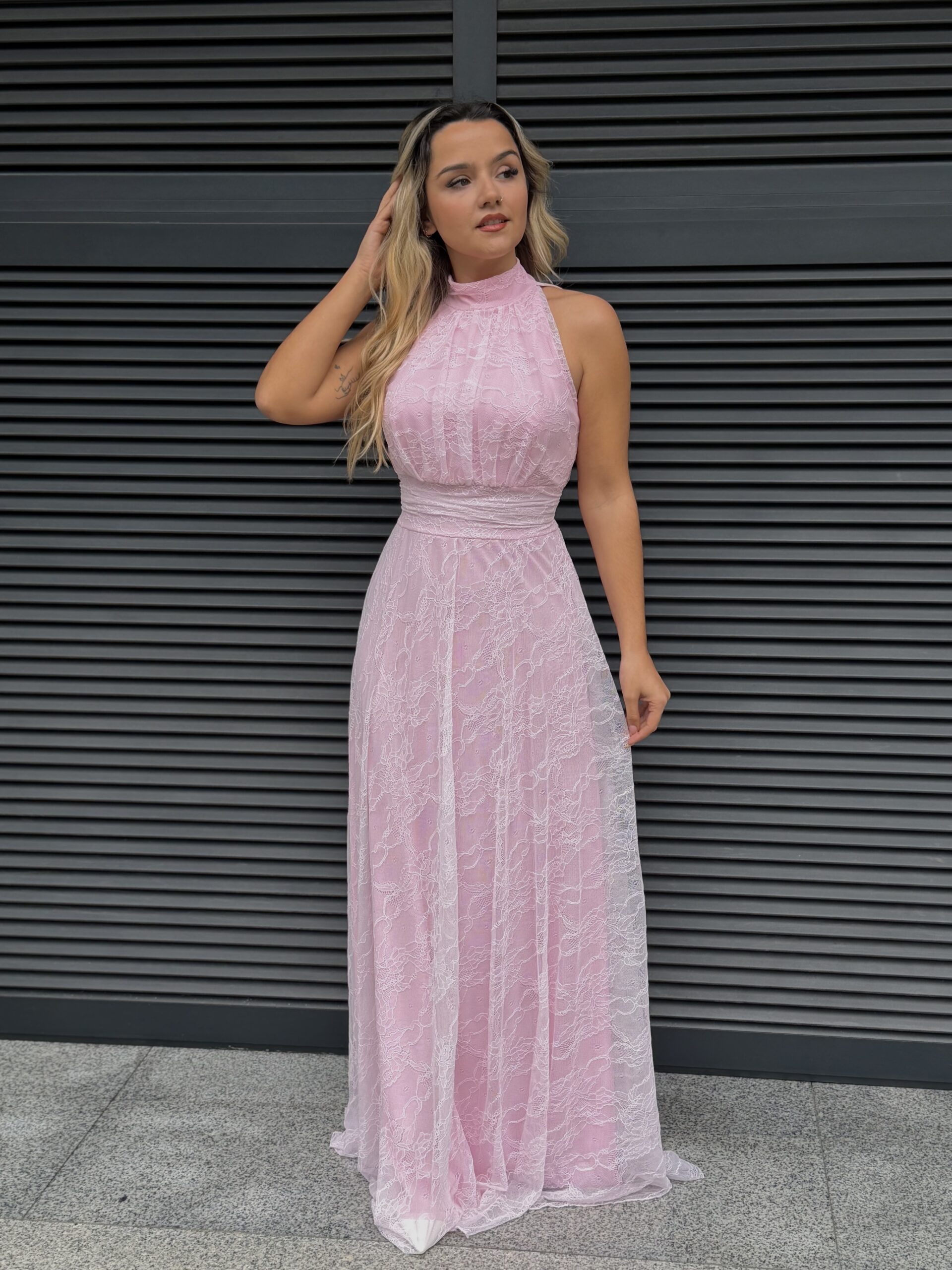 Vestido renda comprido forrado